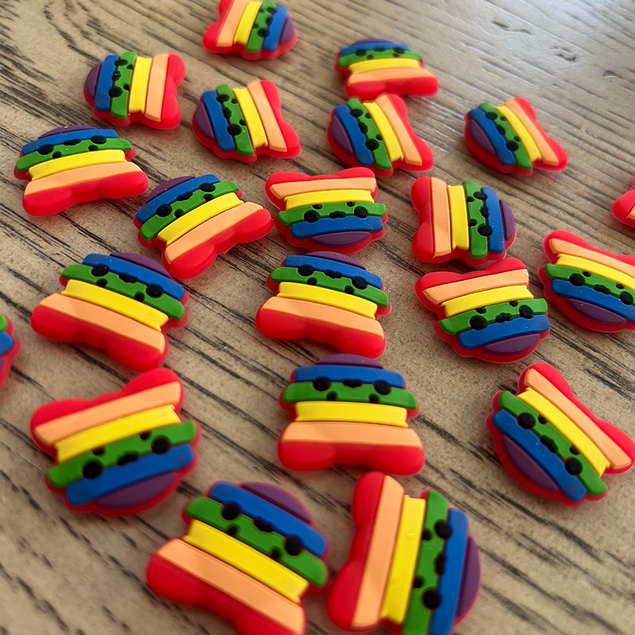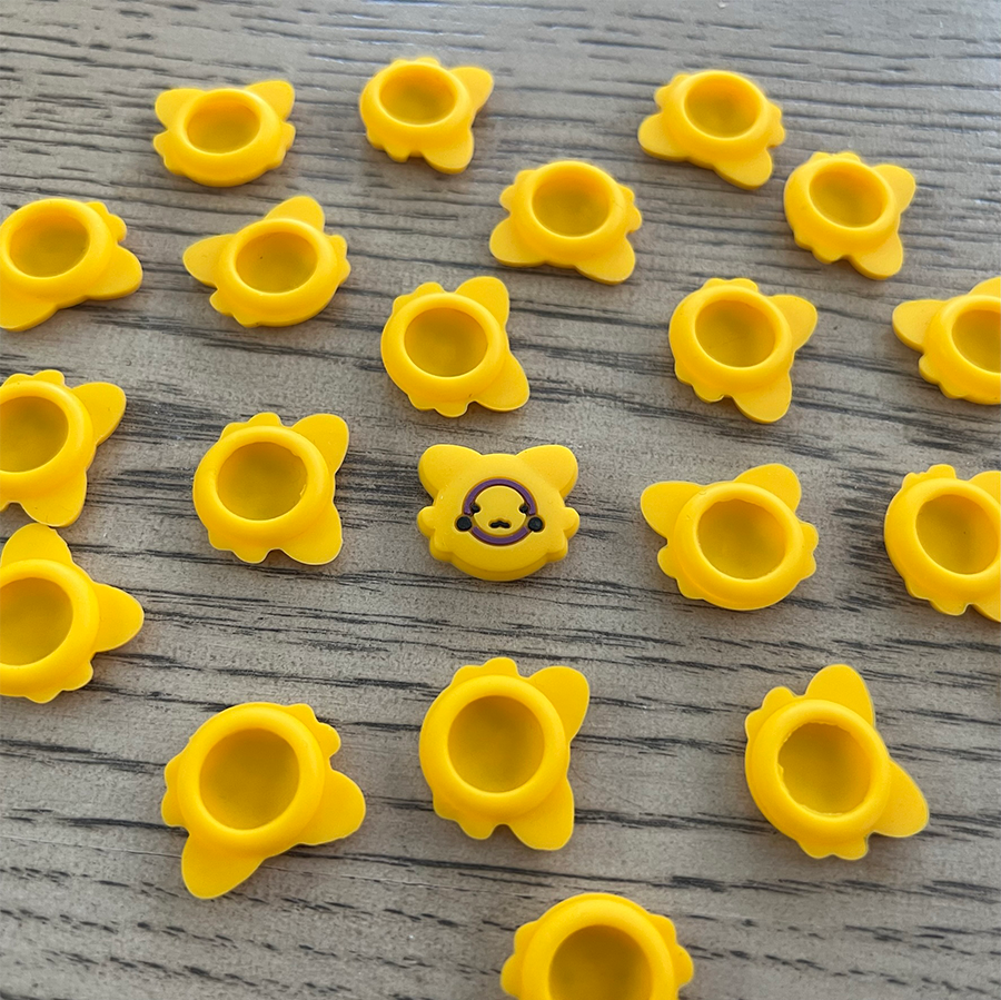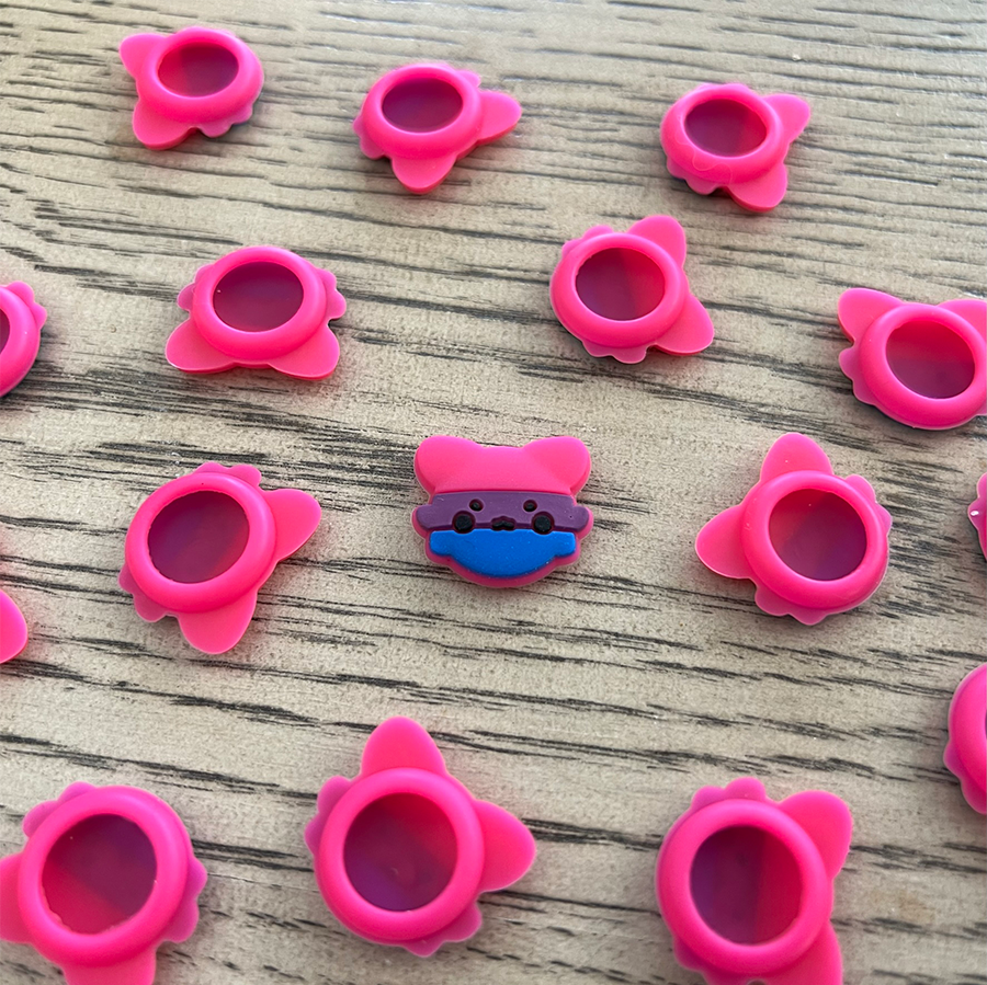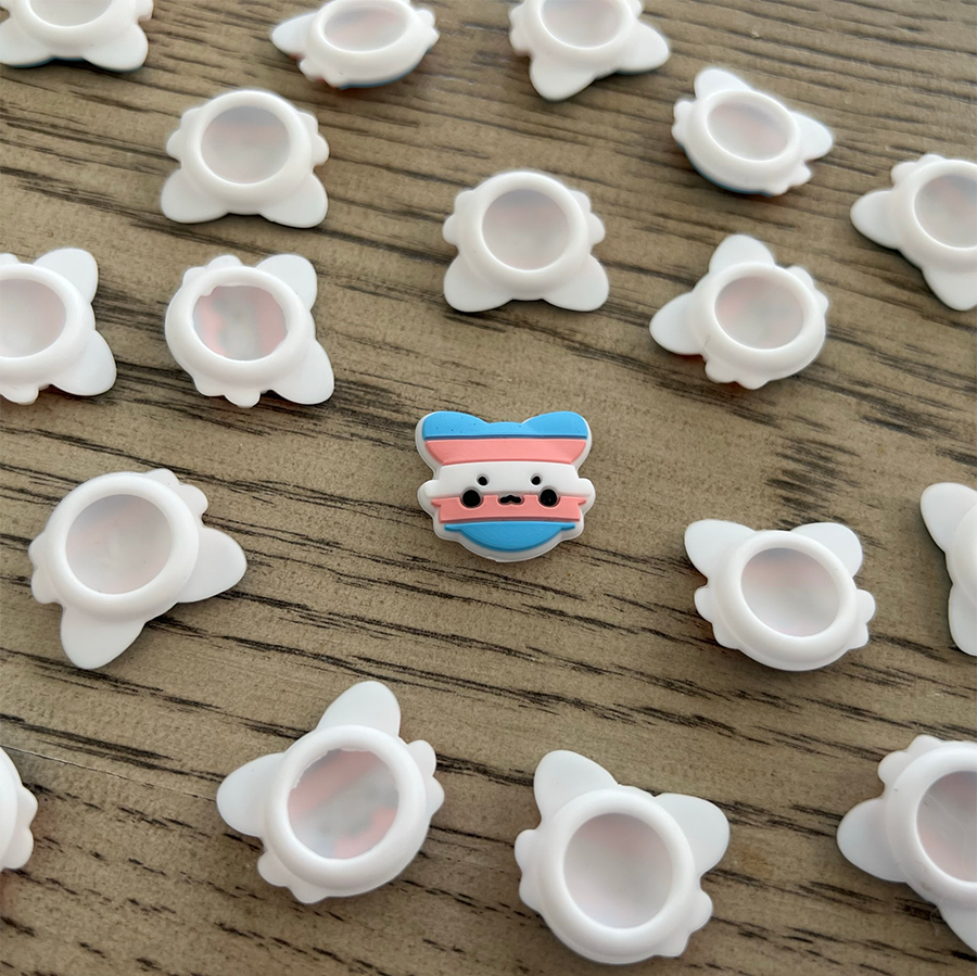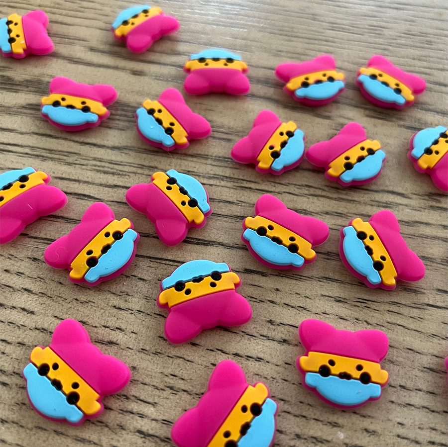 Cute small rubber joycon covers that can also fit on those holed sandals as shoe charms.